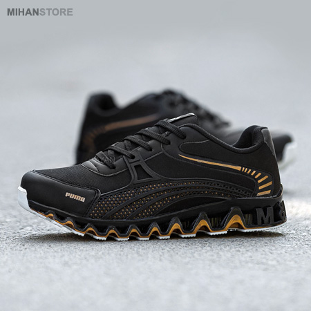 کفش مردانه Puma طرح Dema یکی از پرفروش ترین و محبوب ترین کفش های اسپرت از برند معتبر Puma بوده که جنس رویه آن ترکیبی و بسیار سبک می باشد. این مدل از کفش به خاطر وزن سبک، انعطاف پذیری بالا و راحت و آزاد بودن پا در کفش و هچنین ضربه‌گیر بودن برای پیاده روی، ورزش و دویدن بسیار مناسب و استاندارد است. شما با استفاده از کفش مردانه پوما می توانید به راحتی بر روی تردمیل، سنگفرش، موزاییک و… پیاده روی کنید. کفش مردانه اسپرت Puma در رنگ بسیار زیبای مشکی موجود بوده و شما به راحتی می توانید آن را با انواع پوشش های خود اعم از رسمی، اسپرت و… ست نمایید. کفش مردانه پوما در سایز های ۴۱ الی ۴۴ عرضه شده است که در هنگام ثبت سفارش می توانید سایز کفش مورد نظر خود را انتخاب کرده و سفارش دهید.