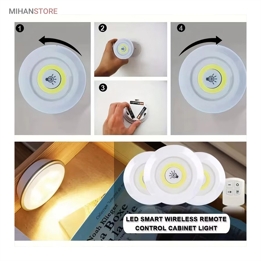 چراغها با استفاده از کنترل از راه دور با برد ۵ تا ۱۰ متر یا به صورت دستی از طریق فشردن قسمت مرکزی هر چراغ روشن و خاموش میشوند. در نتیجه حتی اگر چراغ در مکان مرتفع یا دور از دسترس نصب شده باشد بهراحتی میتوان از راه دور آن را کنترل کرد. طراحی بدون سیم باعث شده است که این چراغها برای نصب در هر مکانی مناسب باشند. نیازی به هیچگونه سیمکشی یا اتصال برق نیست؛ تنها کافیست ۳ عدد باتری AAA (برای هر چراغ) تهیه کنید و آن را در جای دلخواه بچسبانید.